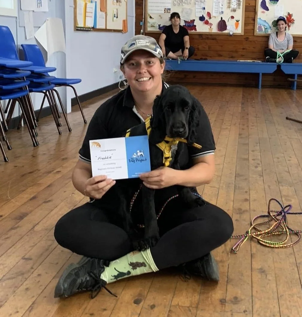 Freddie is both serious and a goofball at the same time. He takes his training and learning very seriously, but is an absolute muppet on walks and adventures. He has the best time running and sniffing in his own little world. Freddie also loves his nosework classes so much, that he has been known to lay on the ground and refuse to leave at the end of his turn.